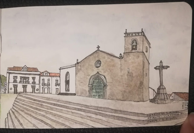 Estive em S.Miguel nas férias da Páscoa. Foram 7 dias maravilhosos, com a maior das sortes com o tempo. Na semana anterior tinha estado o tempo sempre enevoado e chuvoso. Na nossa semana, apesar de o dia acordar com o ceú encoberto e até cairem uns chuvisco, até nós sairmos do hotel após o pequeno-almoço, o tempo abria e ficava uma maravilha. Deu para irmos a banhos todas as manhãs! Devido a sermos um grupo grande não consegui desenhar tudo no local, pois havia sempre movimentação e conversas. Mas há fins para os quais não se olham a meios, e neste caso ia começando no sítio, tirava foto e acabava depois.